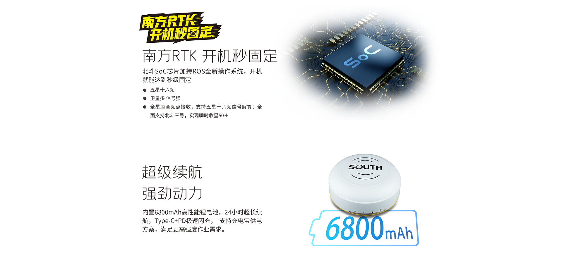 電池 | 內(nèi)置6800mAh高性能鋰電池 7.4V;移動(dòng)站手簿網(wǎng)絡(luò)模式作業(yè)滿(mǎn)足24小時(shí)續(xù)航時(shí)間 |